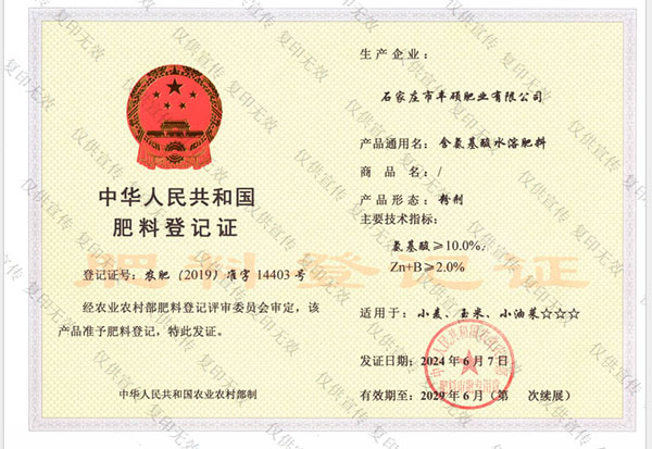 石家莊市豐碩肥業有限公司是一家集新型肥料的研發、制造、營銷、服務于一體的高新技術企業,公司自2008年創辦以來,一直致力于新型肥料的技術研發和市場推廣。公司組建了豐碩新型肥料研究中心(院士專家企業工作站),自主知識產權研發團隊專業科研人員20余人,獲得了多項肥料國家發明專利。公司目前已擁有發酵類有機肥、微生物菌劑、生物有機肥、土壤調理劑、大量元素水溶肥、含腐植酸肥料、含氨基酸肥料、中微量元素肥料等8大品類,“金維克”、“豐碩沃農”等2大自有品牌,擁有20多個暢銷品種。目前,我公司已經通過了“ISO9001 質量管理體系認證”、“ISO14001 環境管理體系認證”、“OHSAS18001 職業健康管理體系認證”。...